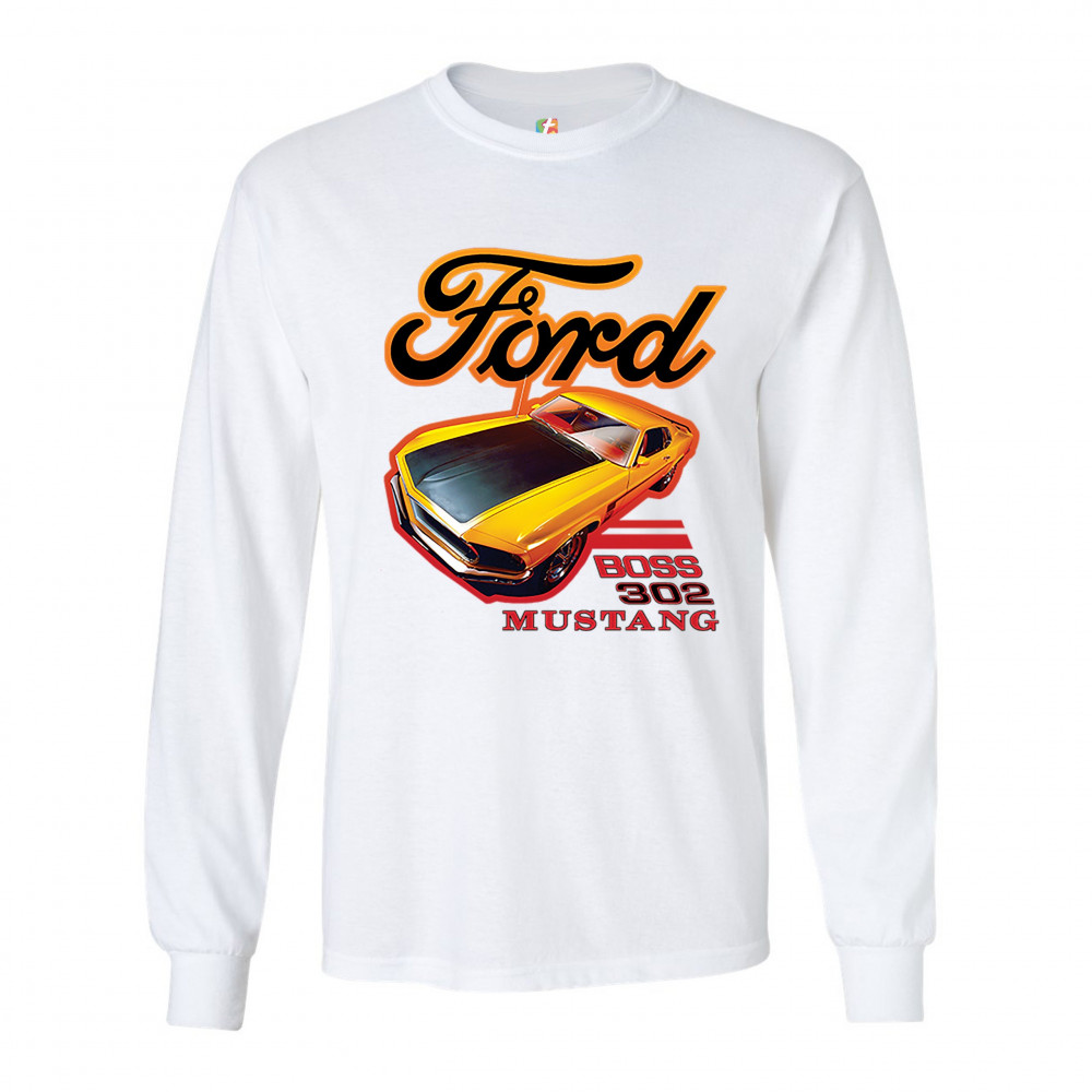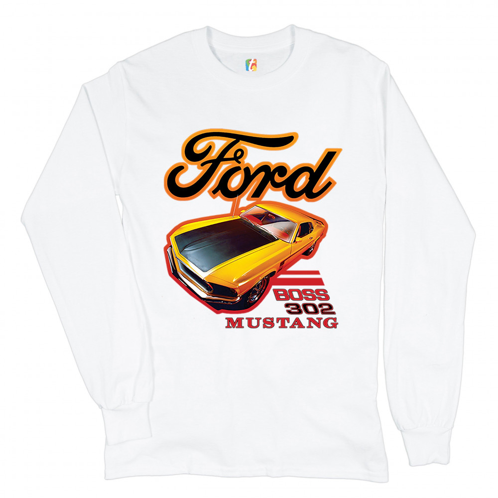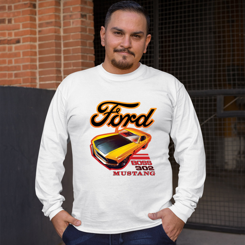 FORD BOSS 302 MUSTANG long sleeve t-shirt vintage american muscle car licensed white