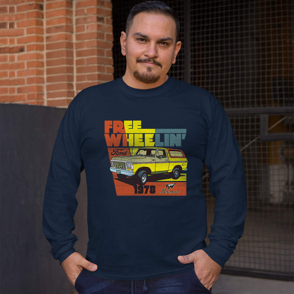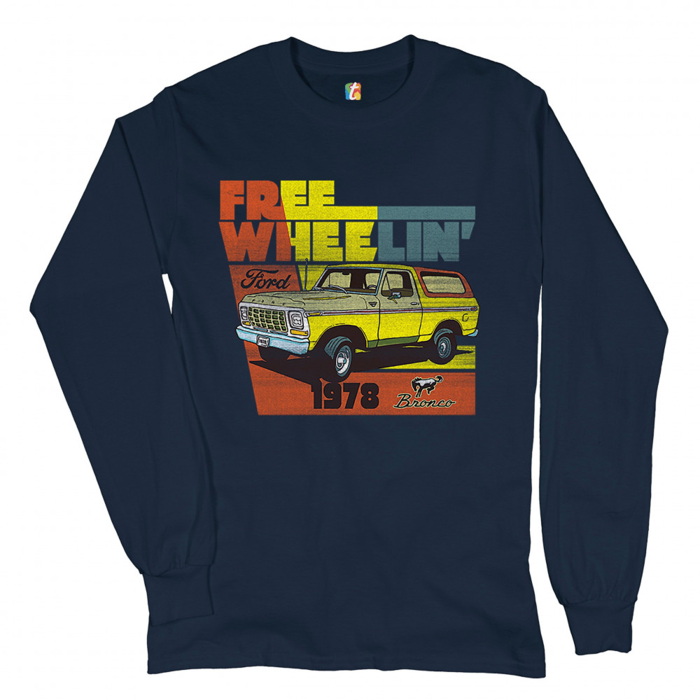 FORD BRONCO 1978 long sleeve t-shirt free wheelin' offroad truck suv licensed navy blue