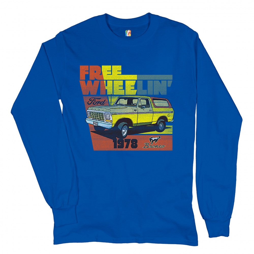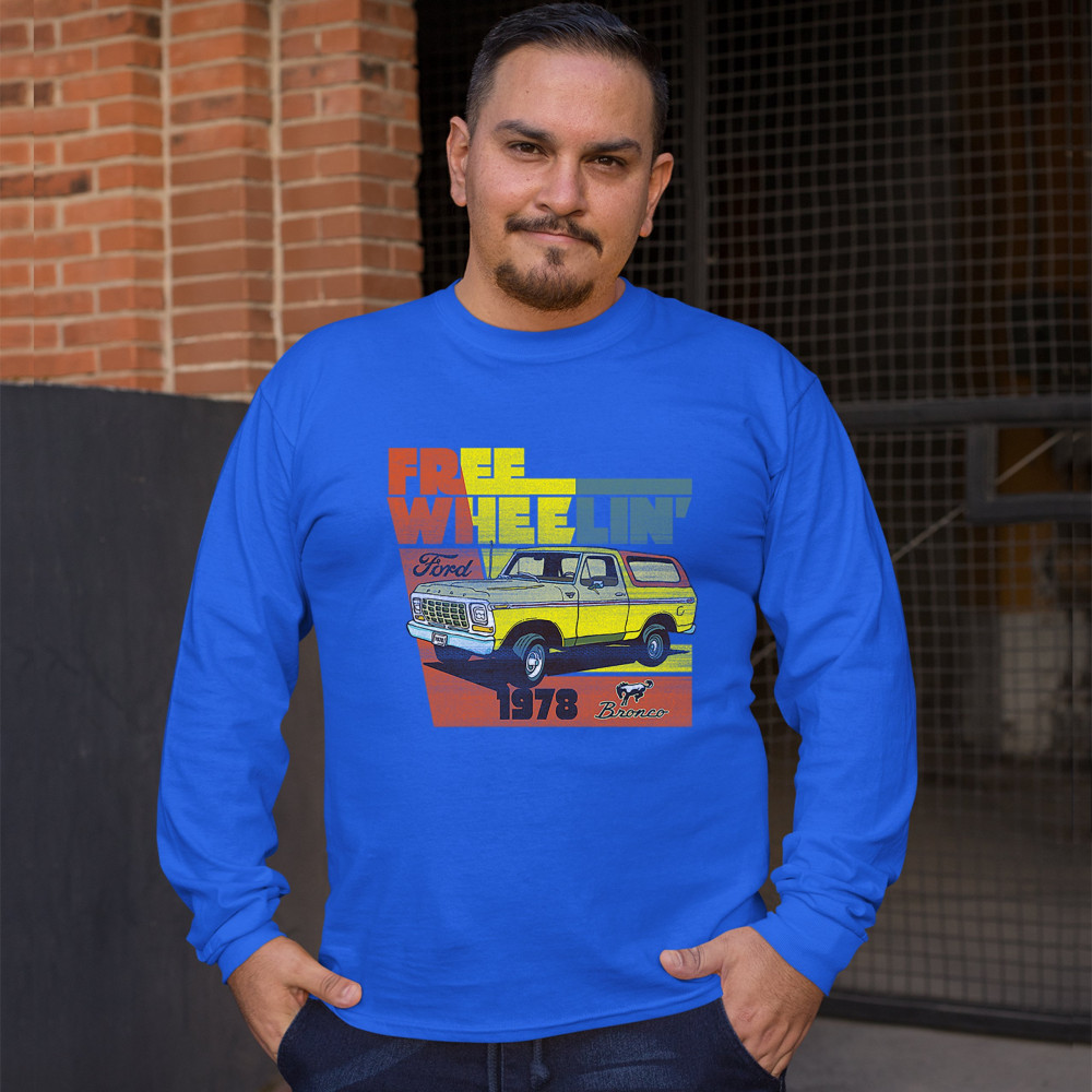 FORD BRONCO 1978 long sleeve t-shirt free wheelin' offroad truck suv licensed royal blue
