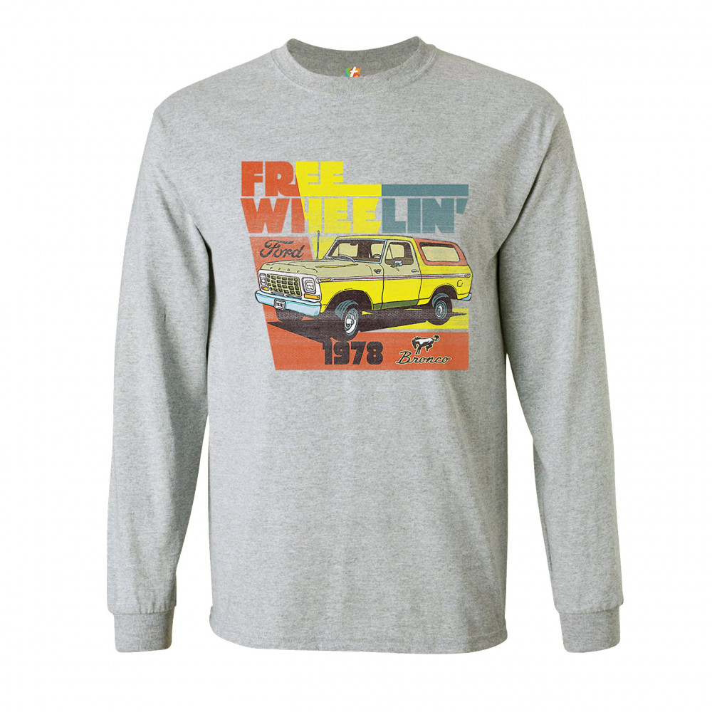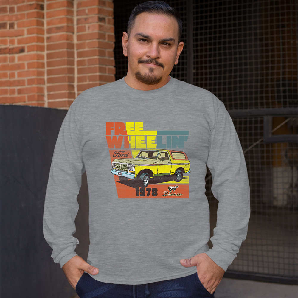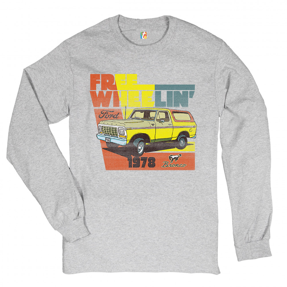 FORD BRONCO 1978 long sleeve t-shirt free wheelin' offroad truck suv licensed gray