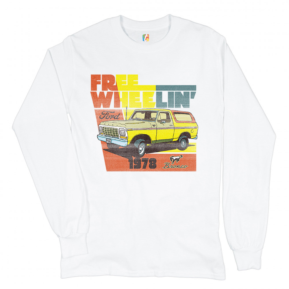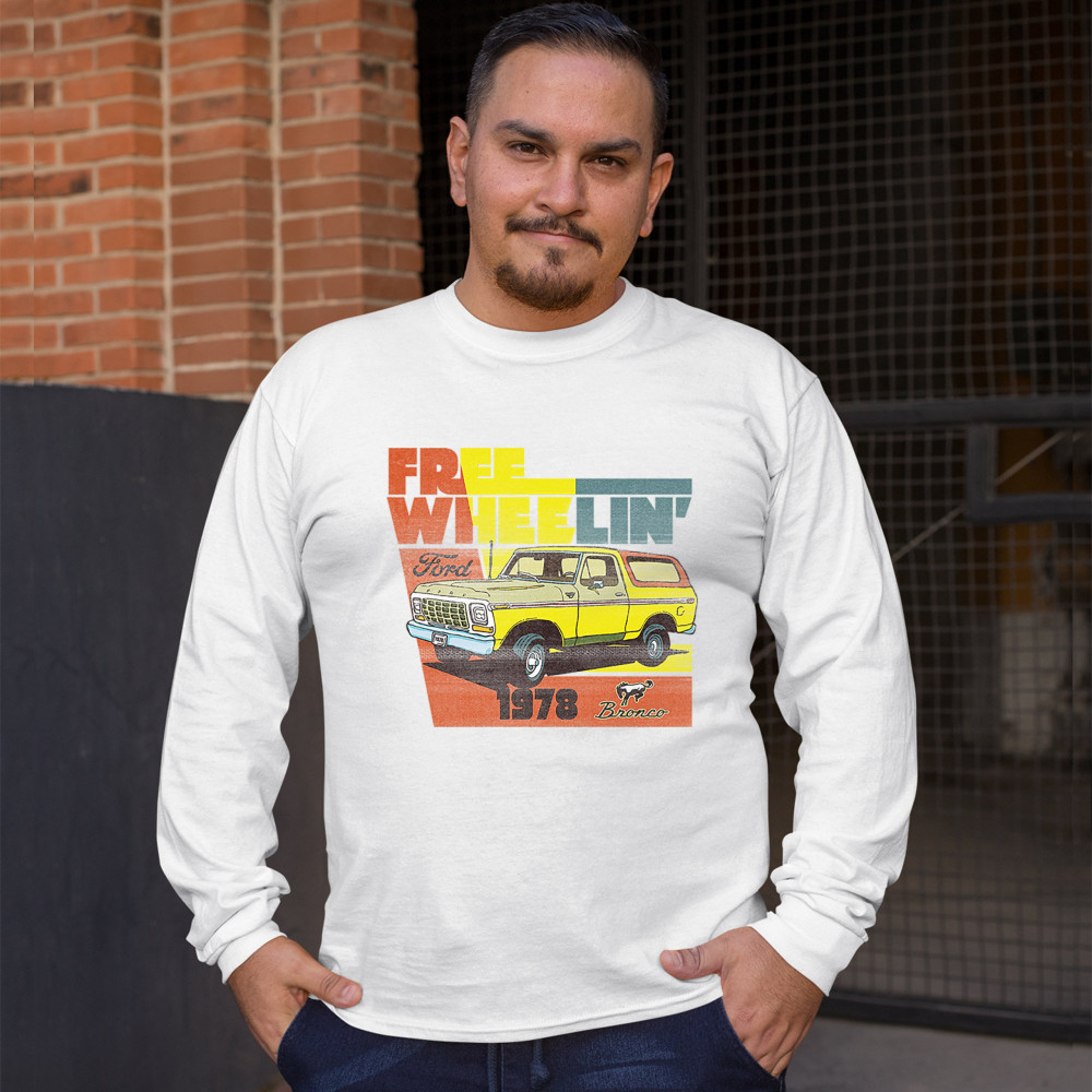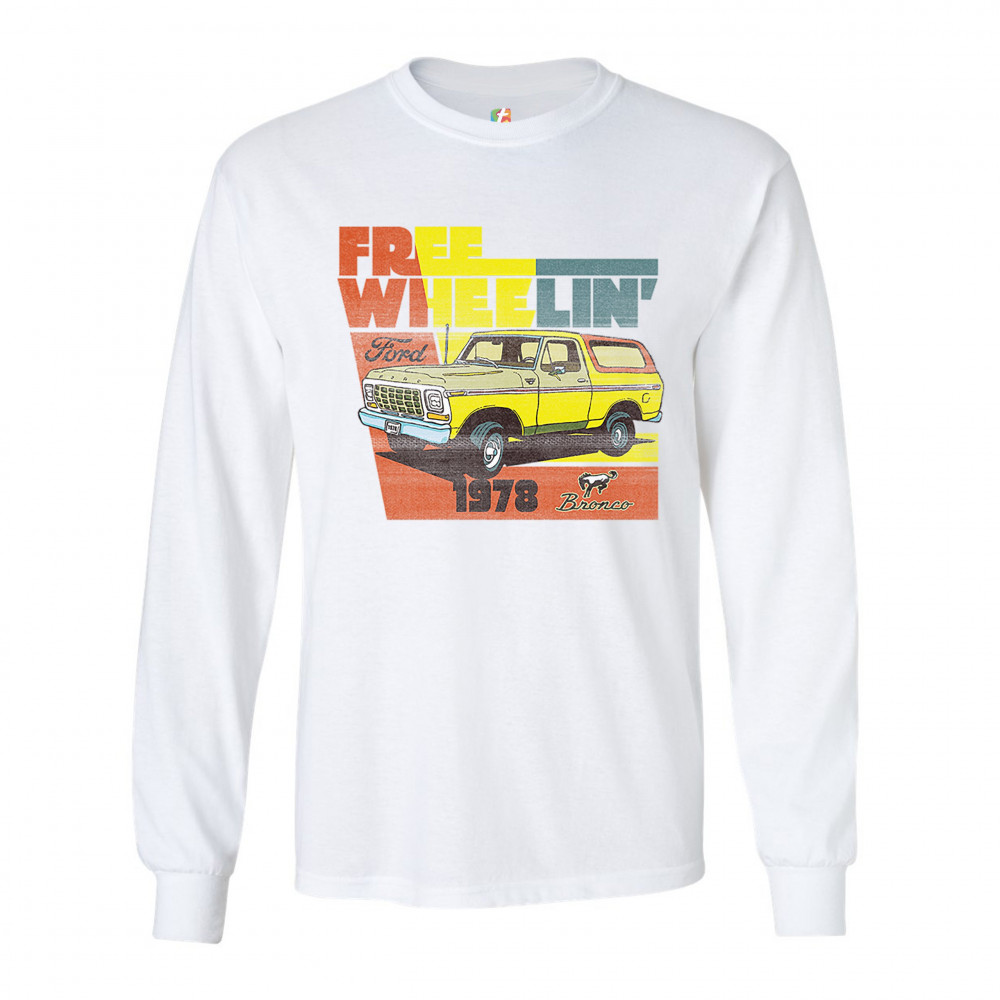 FORD BRONCO 1978 long sleeve t-shirt free wheelin' offroad truck suv licensed white