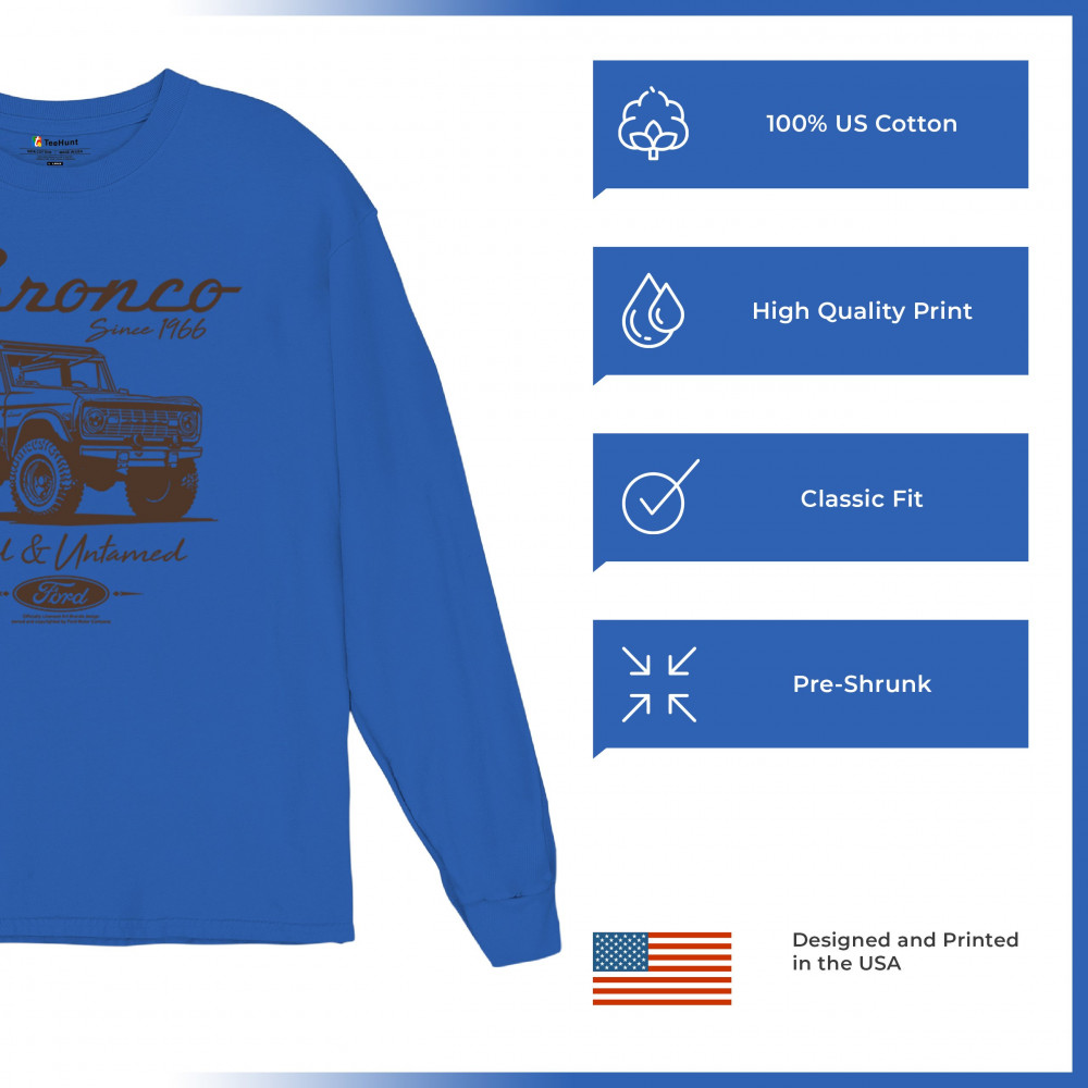 Discover the perfect gift for Ford Bronco enthusiasts with this officially licensed apparel. Highlighting "Bronco Since 1966" and "Wild and Untamed," the design captures the rugged charm of this iconic off-road SUV. Ideal for classic car lovers, outdoor explorers, and 4x4 adventurers, this vintage collectible represents the adventure-ready spirit of the Bronco.