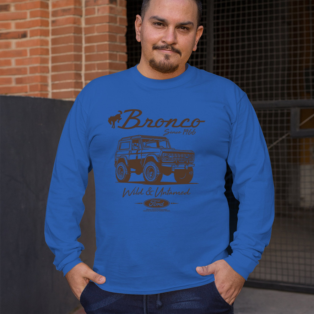 Celebrate the legacy of the Ford Bronco with officially licensed "Bronco Since 1966" retro apparel. Perfect for car lovers and off-road adventurers.