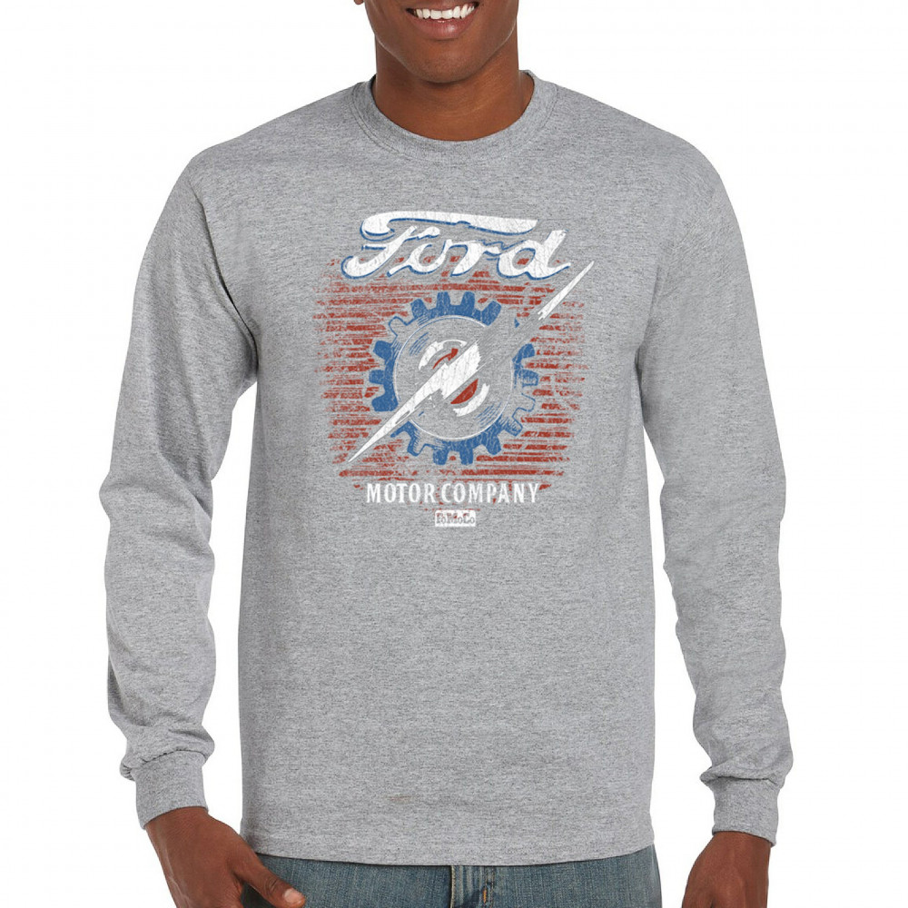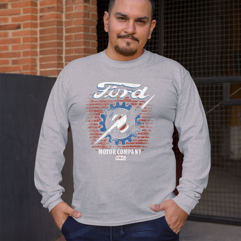 This officially licensed Ford Motor Company design showcases a distressed patriotic theme, bold lightning bolt, and vintage industrial gear emblem, symbolizing the power of American automotive innovation. Perfect for classic car lovers, muscle car enthusiasts, and Ford history fans, this design pays tribute to high-performance heritage, FoMoCo branding, and the legacy of American muscle.