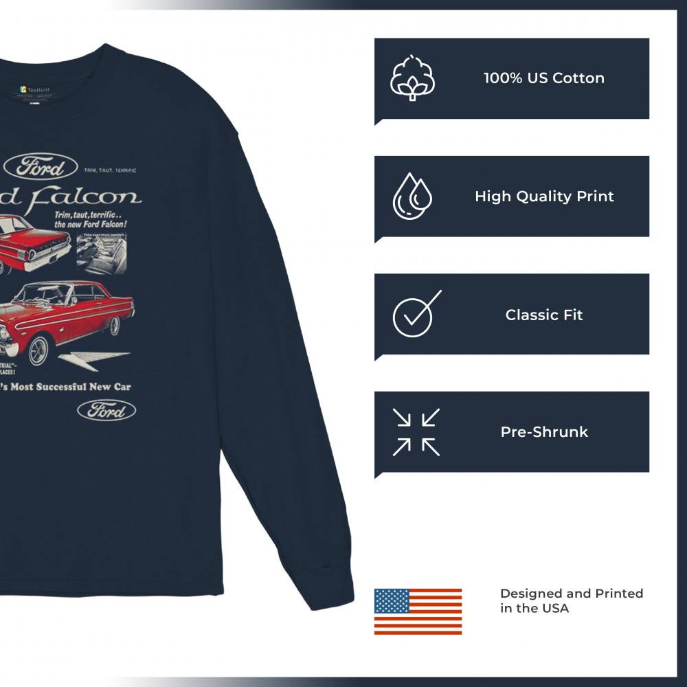 Showcase your love for classic cars with this Ford Falcon retro poster design. A vintage tribute featuring iconic 60s and 70s styling, perfect for gearheads, auto enthusiasts, hot rod fans, and collectors of American classics. Affordable everyday apparel packed with old school horsepower.