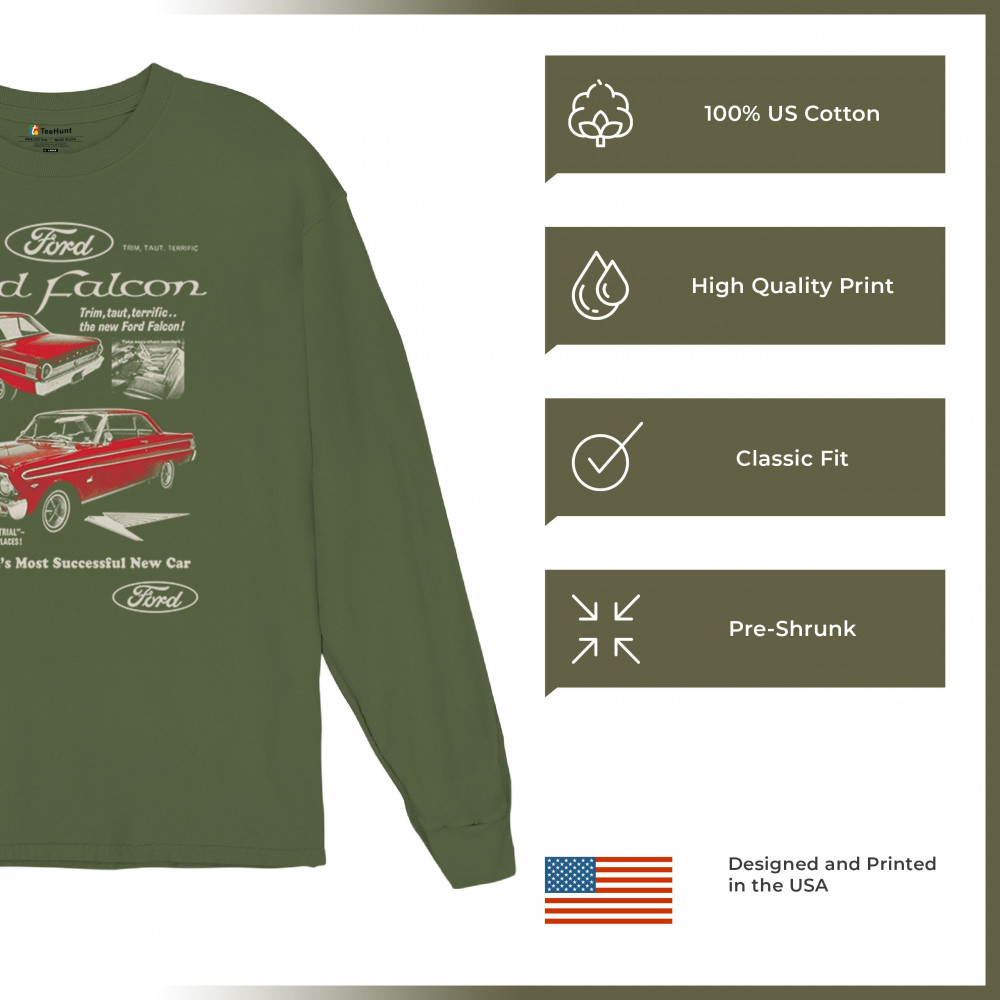 Showcase your love for classic cars with this Ford Falcon retro poster design. A vintage tribute featuring iconic 60s and 70s styling, perfect for gearheads, auto enthusiasts, hot rod fans, and collectors of American classics. Affordable everyday apparel packed with old school horsepower.