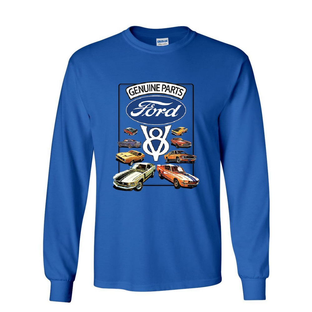FORD GENUINE PARTS long sleeve t-shirt american classic muscle cars v8 motor tee royal blue