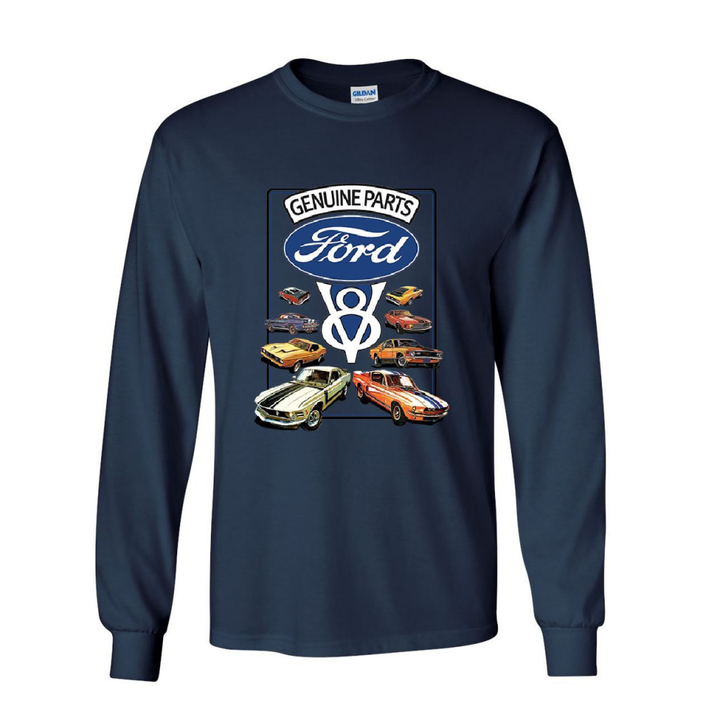 FORD GENUINE PARTS long sleeve t-shirt american classic muscle cars v8 motor tee navy blue