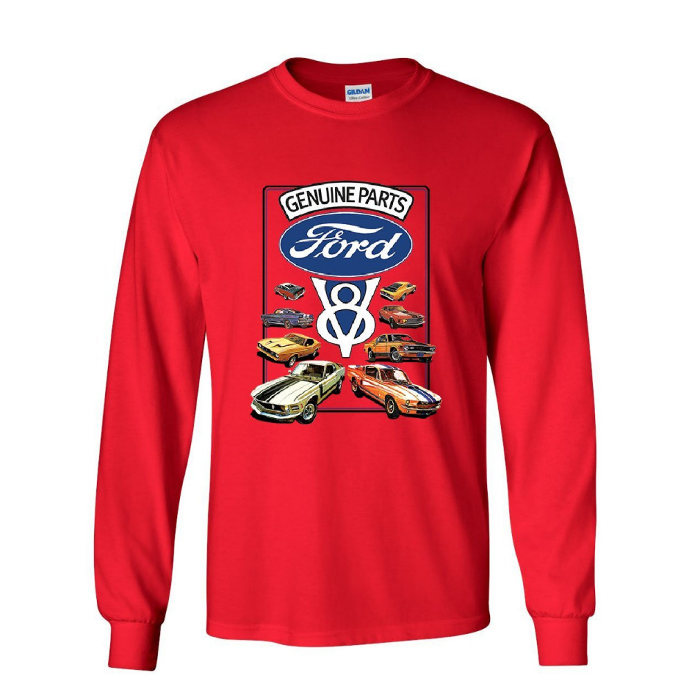 FORD GENUINE PARTS long sleeve t-shirt american classic muscle cars v8 motor tee red