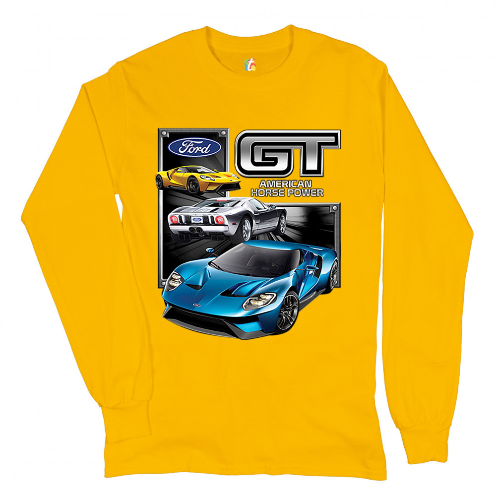 FORD GT AMERICAN HORSE POWER long sleeve t-shirt sports race car licensed yellow