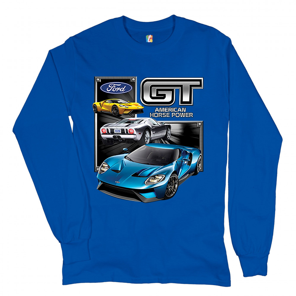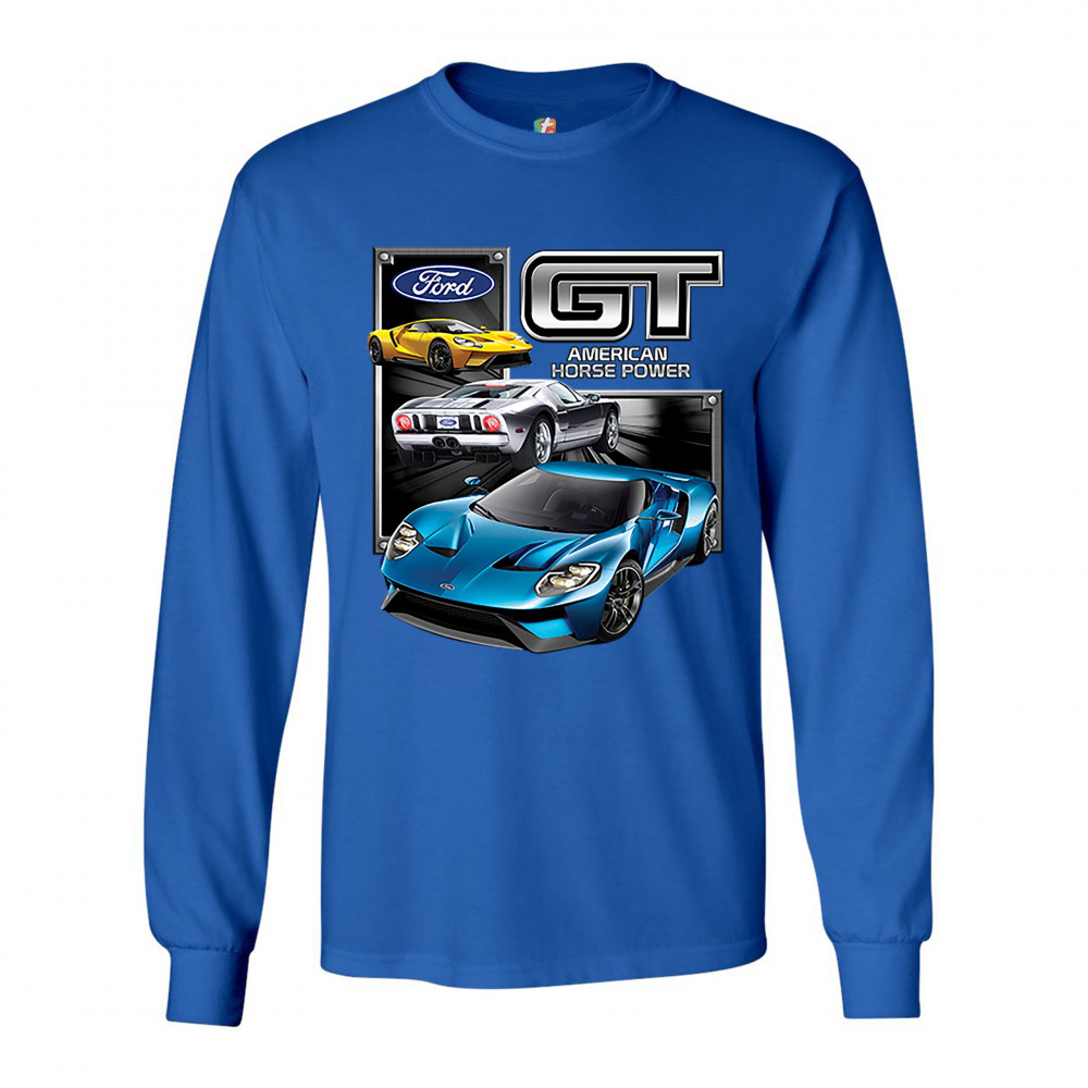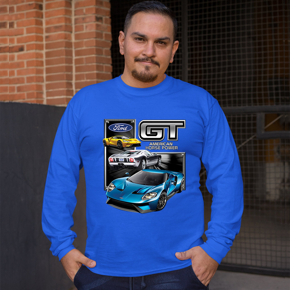 FORD GT AMERICAN HORSE POWER long sleeve t-shirt sports race car licensed royal blue