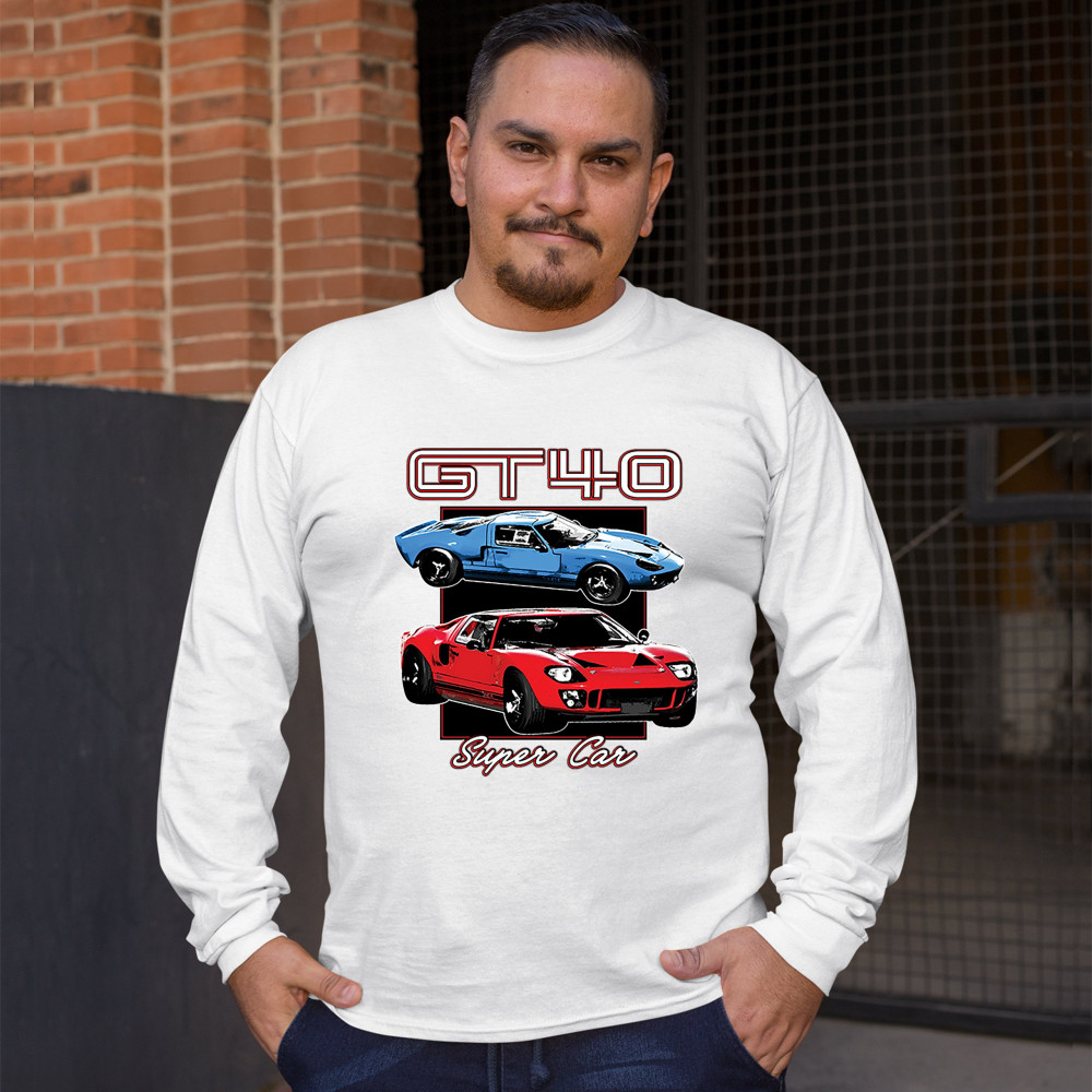 FORD GT40 long sleeve t-shirt american vintage super car retro licensed white