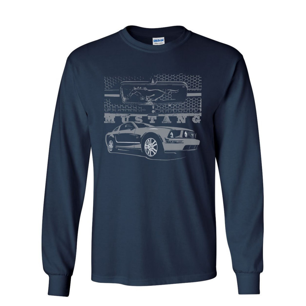 FORD HONEYCOMB GRILLE long sleeve t-shirt mustang silhouette us muscle car tee navy blue