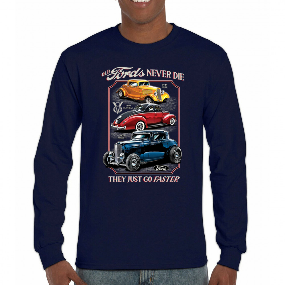 This retro design features three legendary Ford hot rods from the 1930s and 1940s, boldly rendered in a tribute to American street rod history. Ideal for muscle car lovers, vintage performance fans, and classic car culture enthusiasts who appreciate timeless speed. A must-have for cruise nights, garage hangs, and car shows.