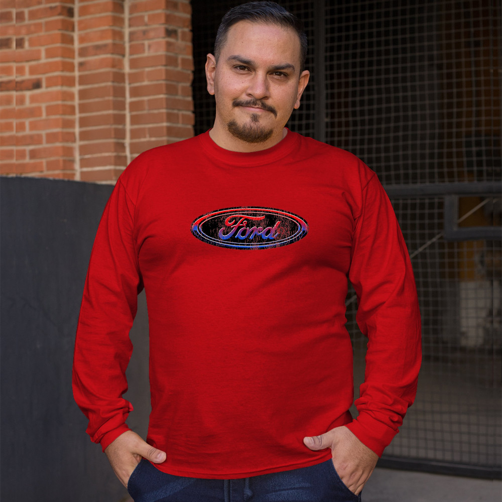 FORD MOTOR COMPANY LOGO long sleeve t-shirt american made cars licensed red
