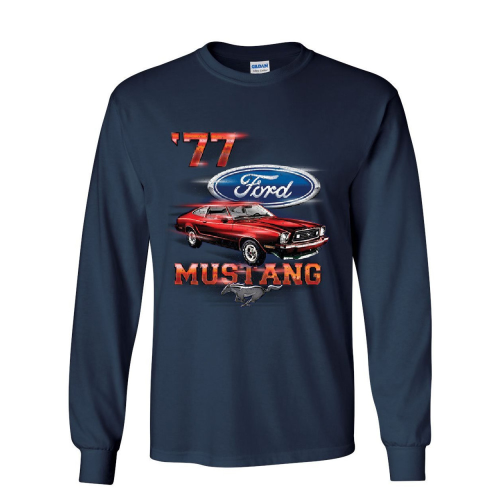 FORD MUSTANG '77 long sleeve t-shirt american classic muscle car tee navy blue