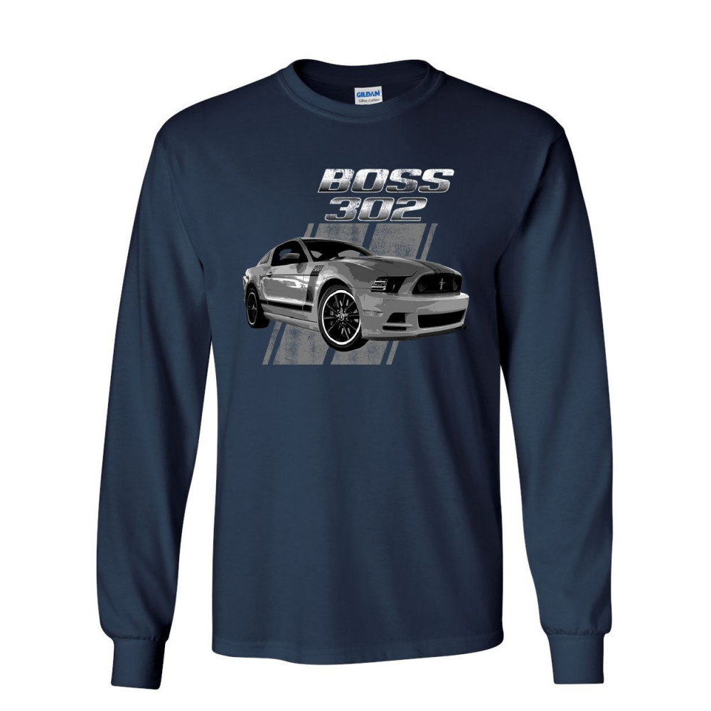 FORD MUSTANG BOSS 302 long sleeve t-shirt 50 years anniversary muscle car tee navy blue
