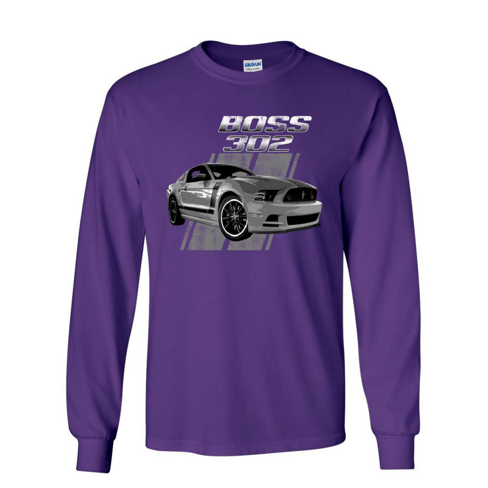 FORD MUSTANG BOSS 302 long sleeve t-shirt 50 years anniversary muscle car tee purple