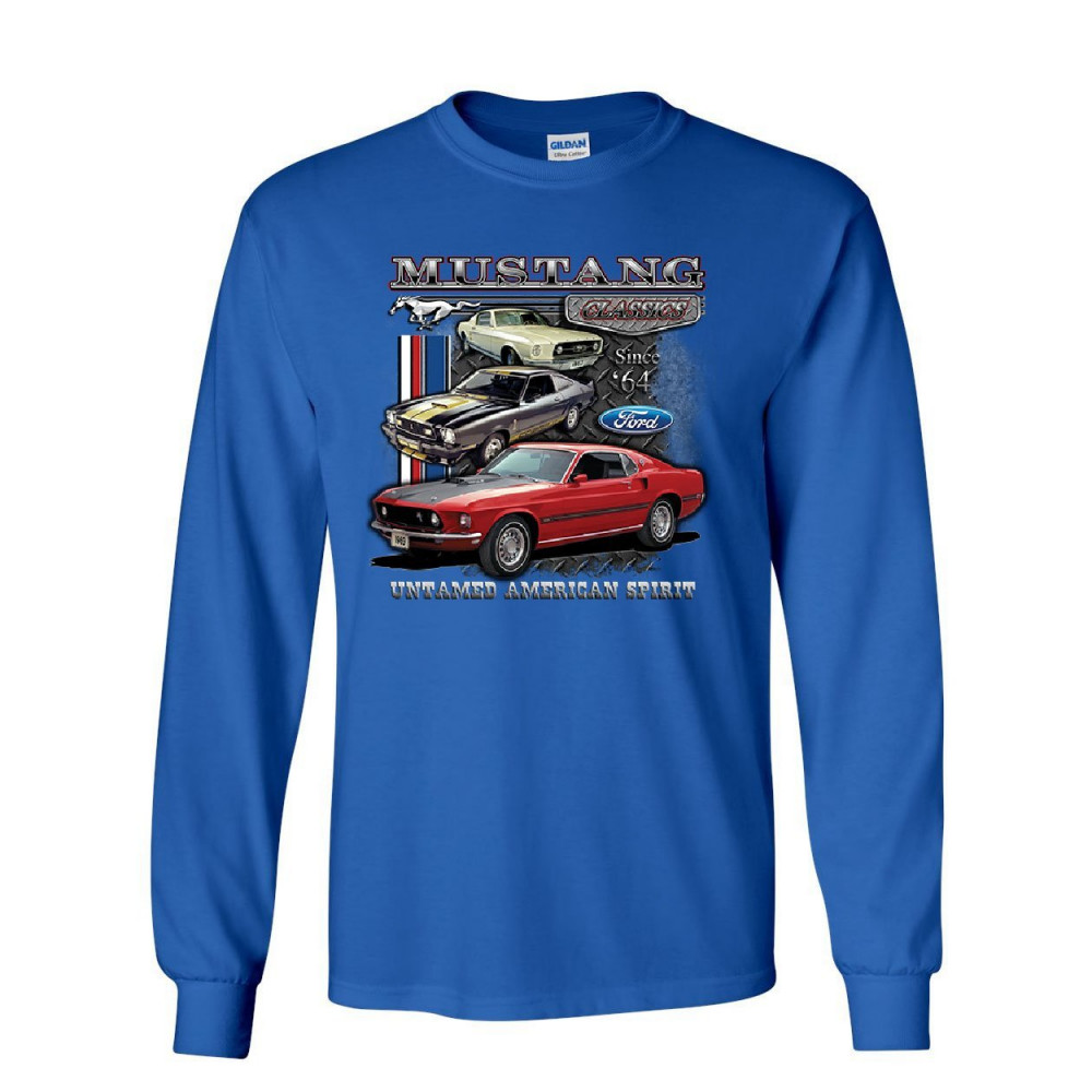 FORD MUSTANG CLASSICS long sleeve t-shirt muscle car untamed american spirit tee royal blue