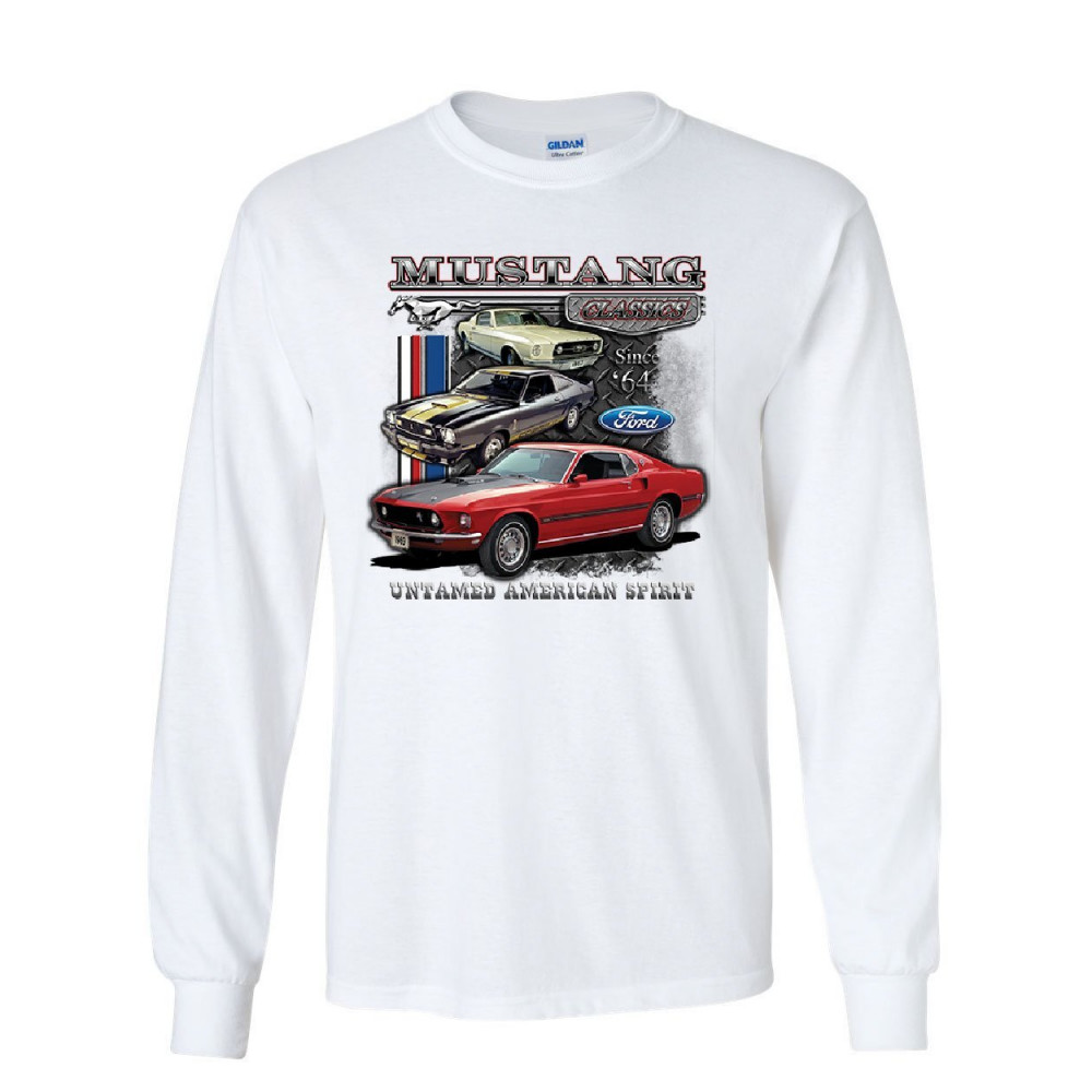 FORD MUSTANG CLASSICS long sleeve t-shirt muscle car untamed american spirit tee white