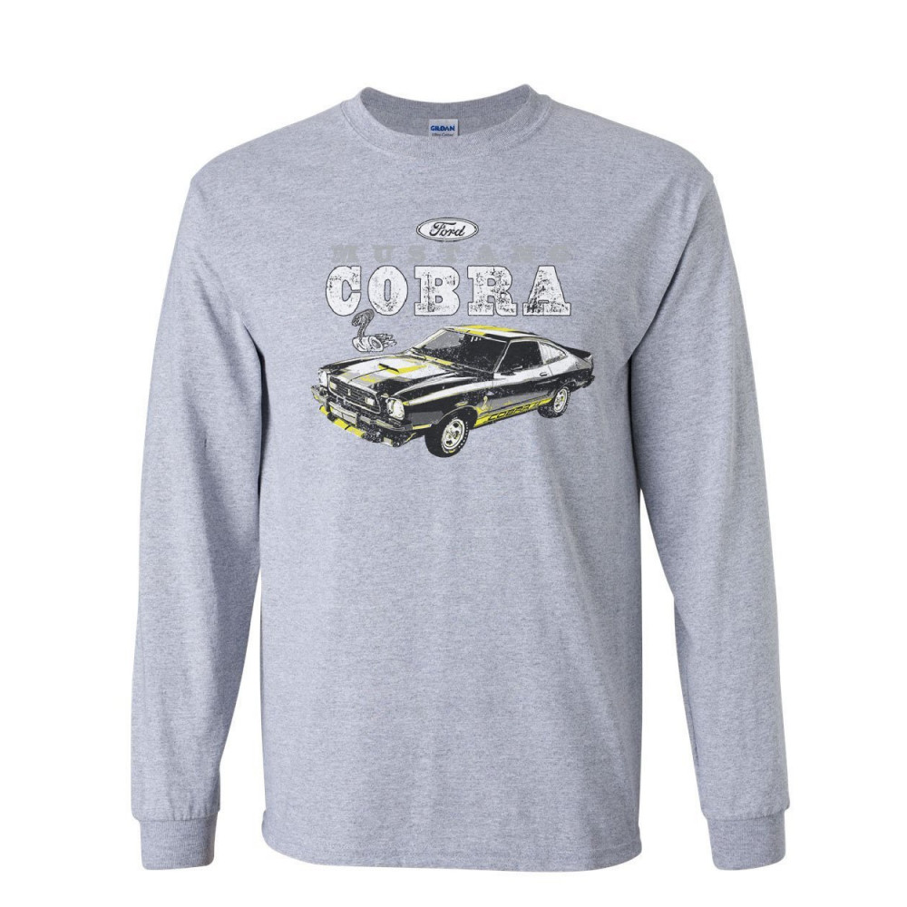FORD MUSTANG COBRA long sleeve t-shirt american classic muscle car licensed tee gray