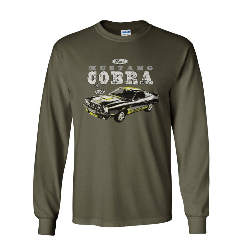 FORD MUSTANG COBRA long sleeve t-shirt american classic muscle car licensed tee military green