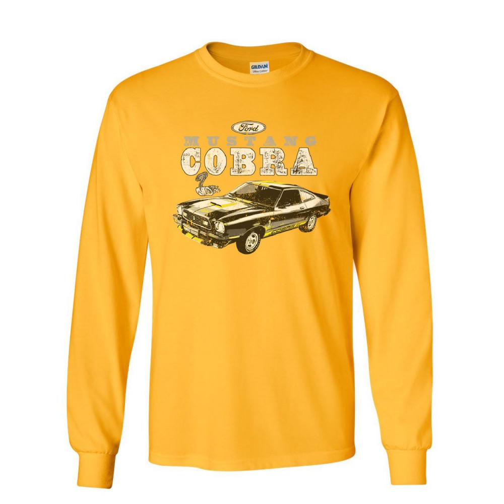 FORD MUSTANG COBRA long sleeve t-shirt american classic muscle car licensed tee yellow