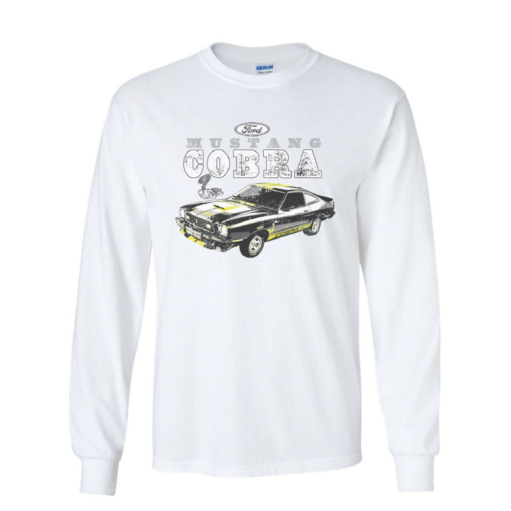 FORD MUSTANG COBRA long sleeve t-shirt american classic muscle car licensed tee white