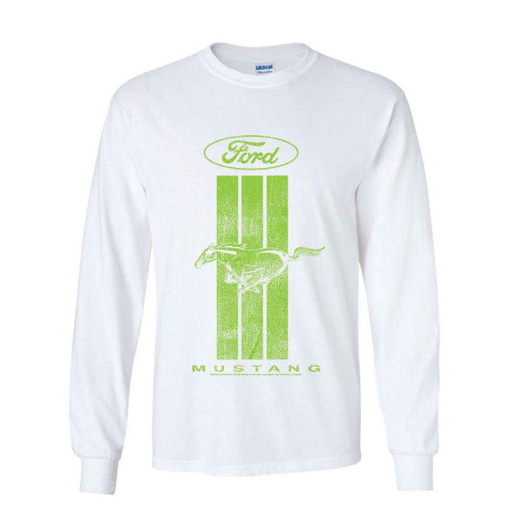 FORD MUSTANG GREEN STRIPE long sleeve t-shirt classic american muscle car tee white