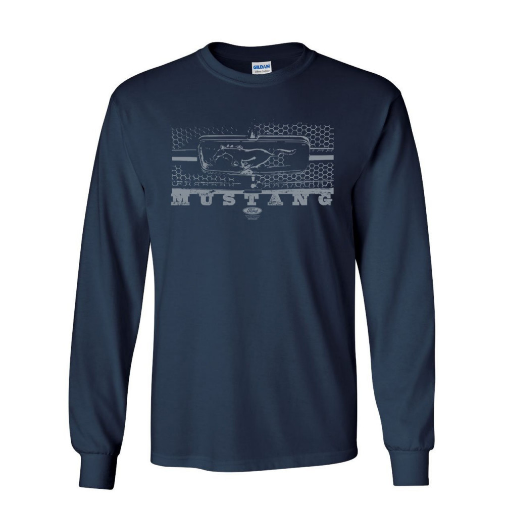 FORD MUSTANG HONEYCOMB GRILLE long sleeve t-shirt legendary american muscle tee navy blue