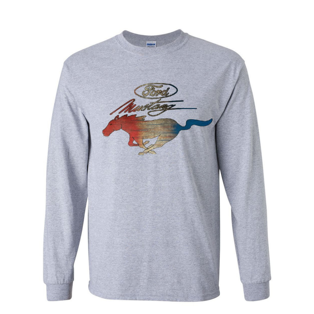 FORD MUSTANG LOGO long sleeve t-shirt gt shelby cobra boss 302 tee gray