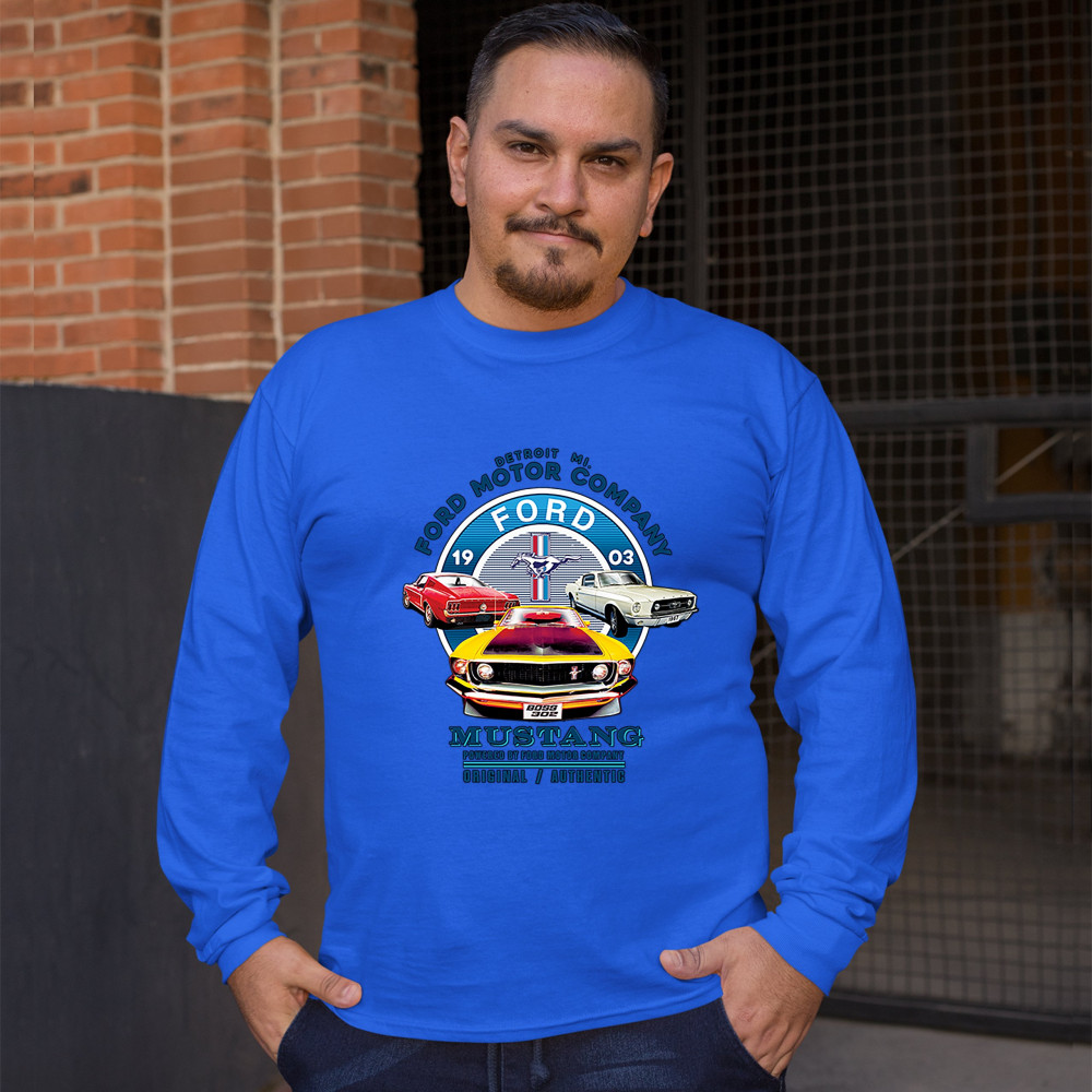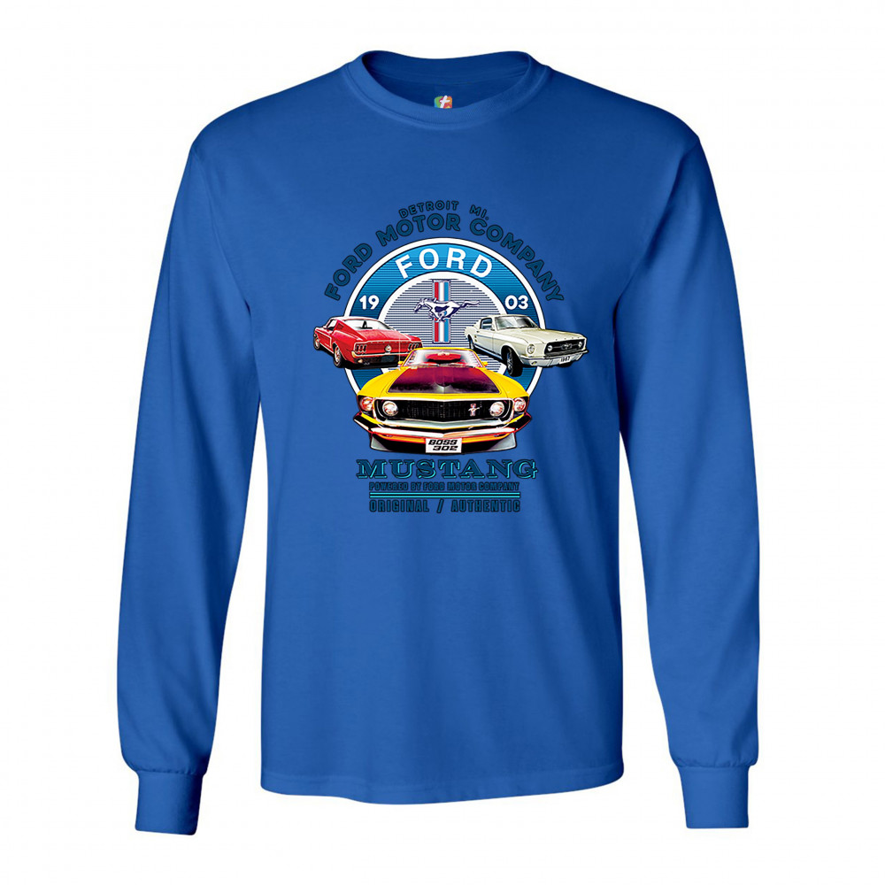 FORD MUSTANG long sleeve t-shirt detroit mi. 1903 ford motor company licensed royal blue