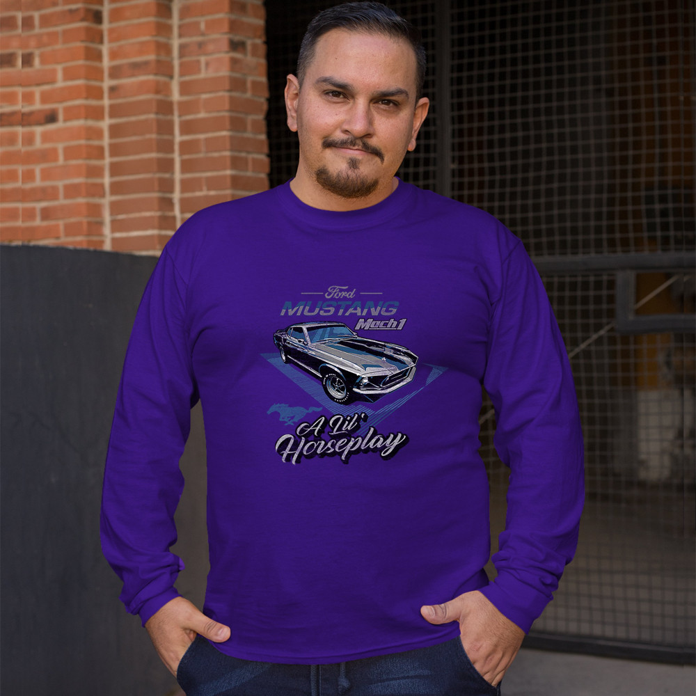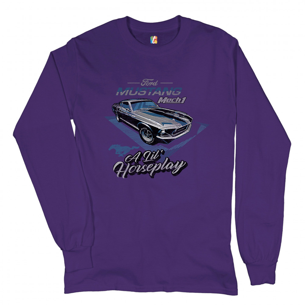 FORD MUSTANG MACH 1 A LIL' HORSEPLAY long sleeve t-shirt muscle car licensed purple
