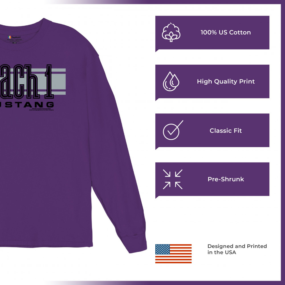 FORD MUSTANG MACH 1 LOGO long sleeve t-shirt legendary performance licensed purple