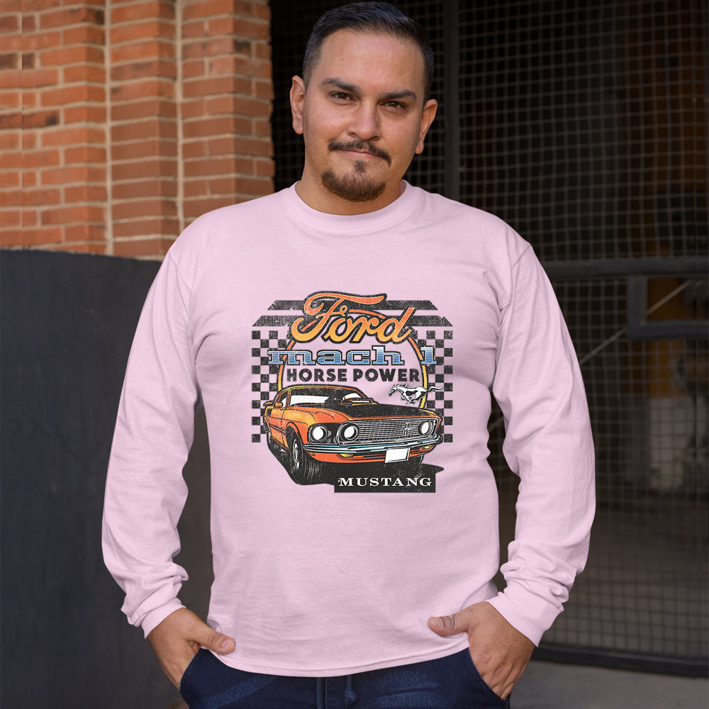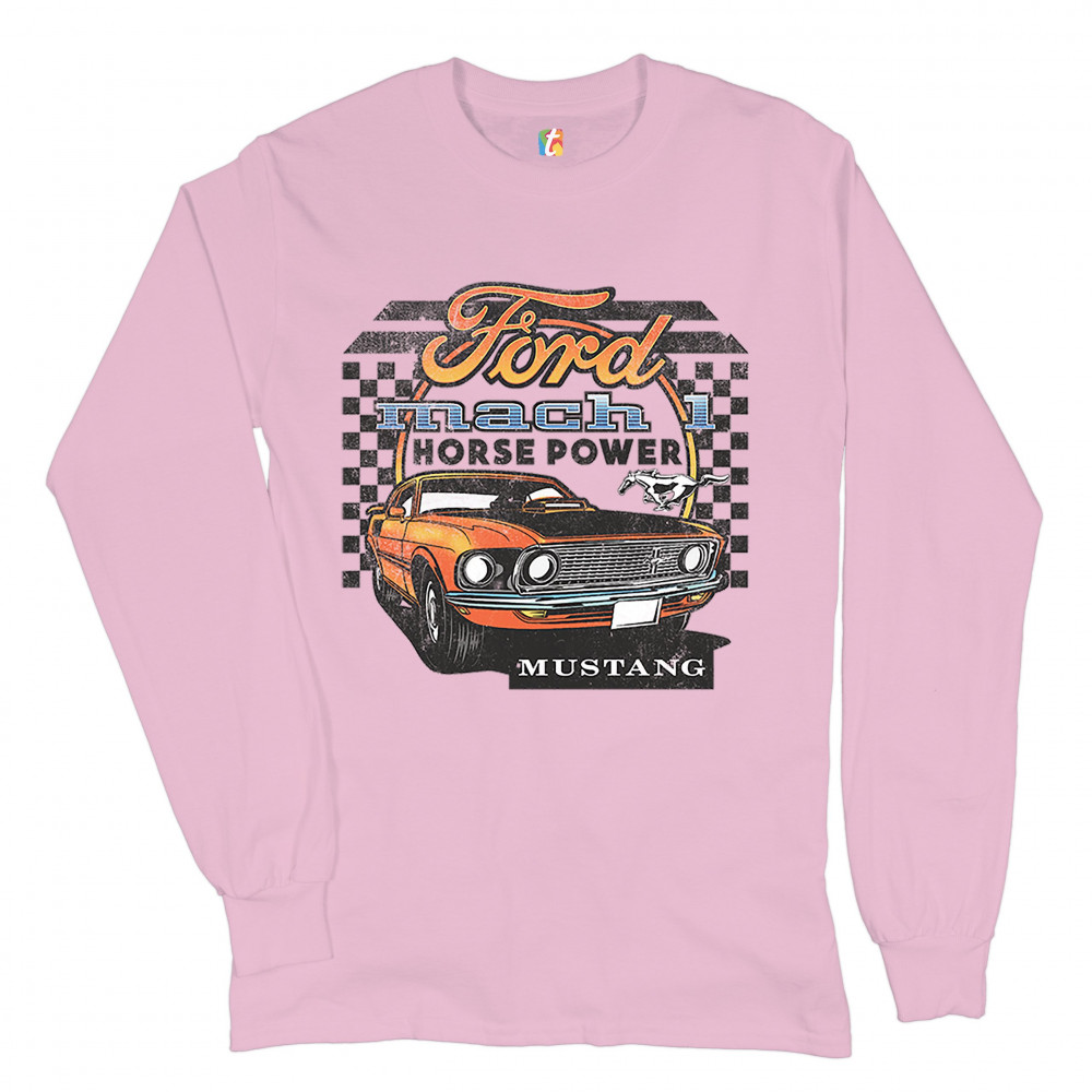 FORD MUSTANG MACH 1 long sleeve t-shirt horse power american muscle licensed pink