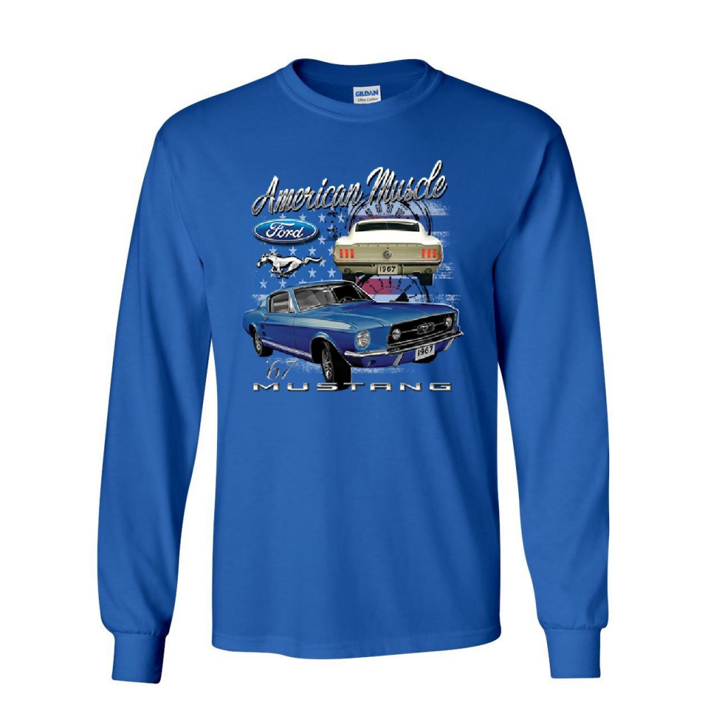 FORD MUSTANG SHELBY 1967 GT long sleeve t-shirt american made muscle cars tee royal blue