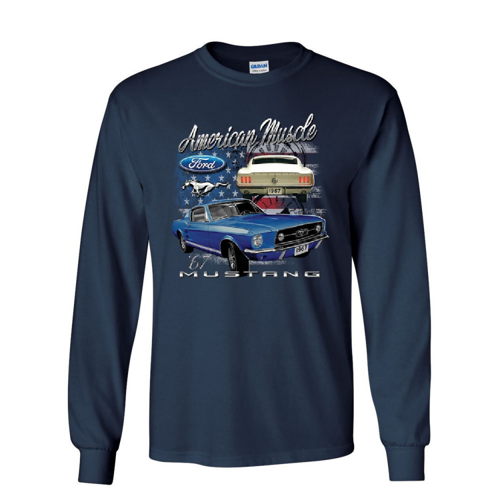 FORD MUSTANG SHELBY 1967 GT long sleeve t-shirt american made muscle cars tee navy blue