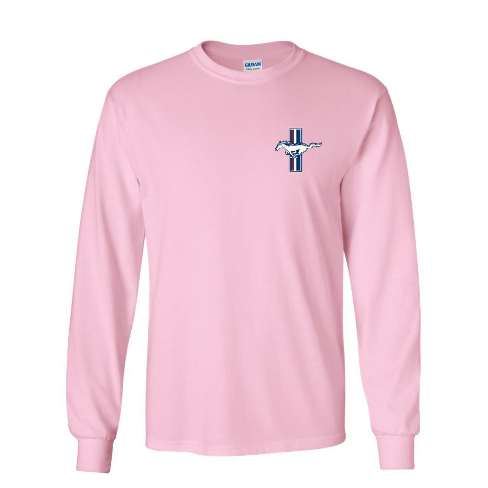 FORD MUSTAND THE LEGEND LIVES LOGO long sleeve t-shirt classic muscle cars tee light pink