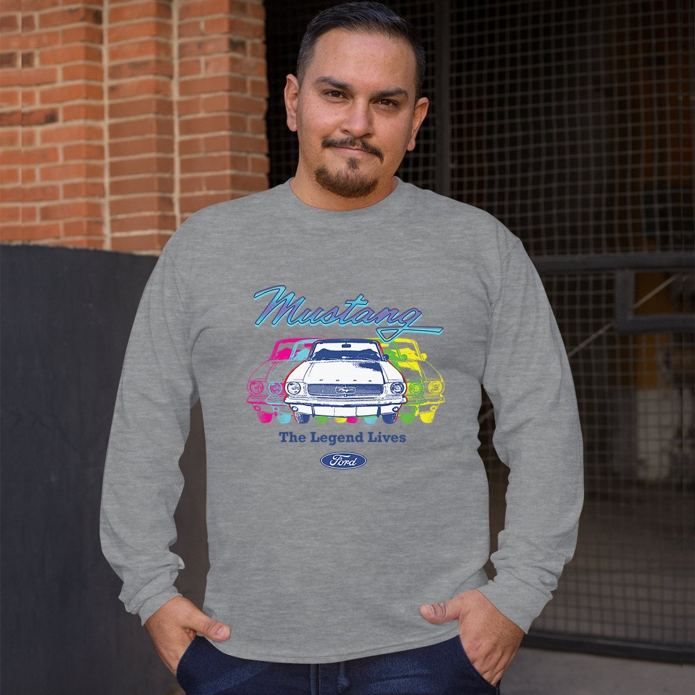 FORD MUSTANG THE LEGEND LIVES long sleeve t-shirt american classic licensed gray