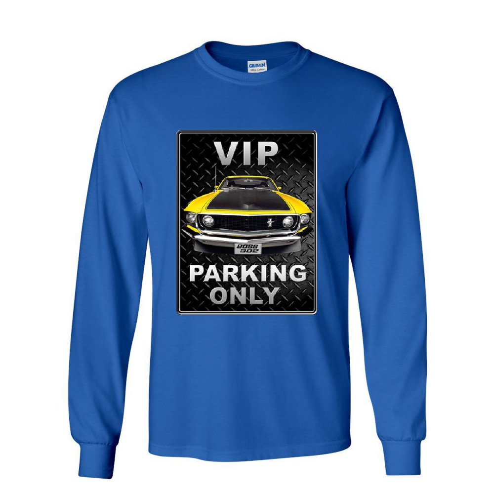 VIP PARKING ONLY ford mustang long sleeve t-shirt yellow boss 302 muscle car tee royal blue