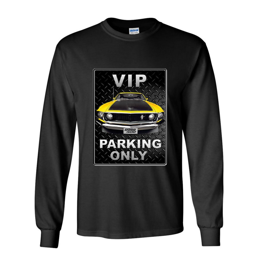 VIP PARKING ONLY ford mustang long sleeve t-shirt yellow boss 302 muscle car tee black