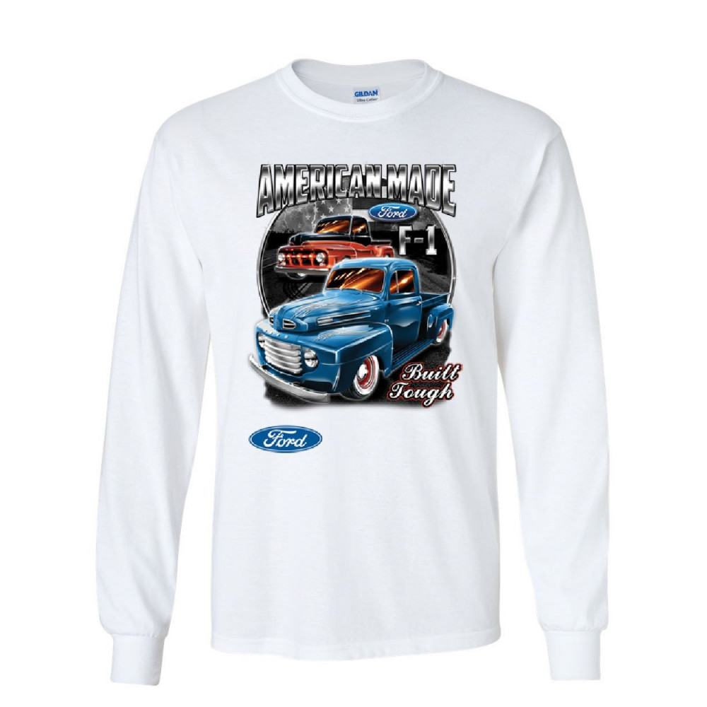 FORD PICKUP TRUCKS F1 long sleeve t-shirt american made hot rod built tough tee white