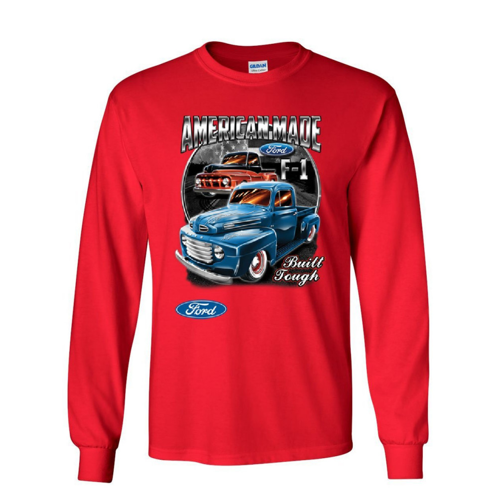 FORD PICKUP TRUCKS F1 long sleeve t-shirt american made hot rod built tough tee red