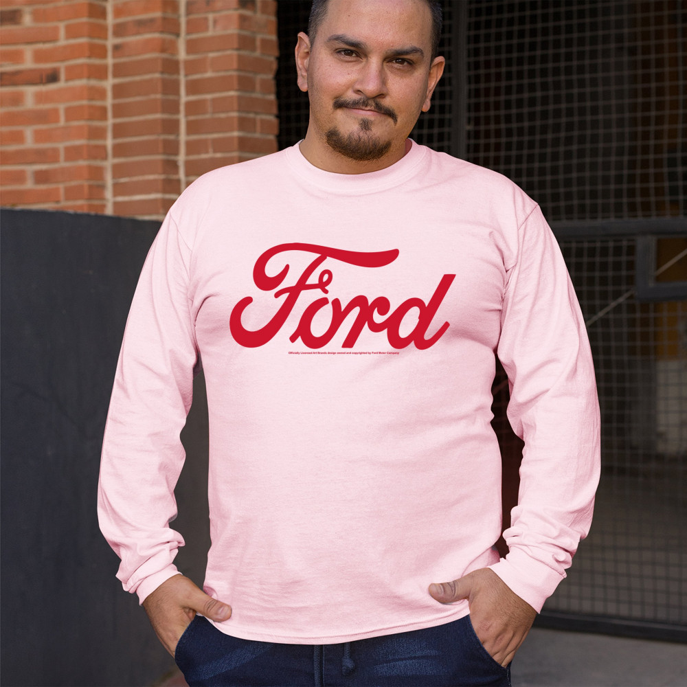 Celebrate American automotive history with this officially licensed Ford script logo design. Rendered in bold red, it honors the legacy of Ford’s muscle car era and modern performance culture. Ideal for collectors, drivers, and auto fans at meets, garages, or everyday wear with pride.