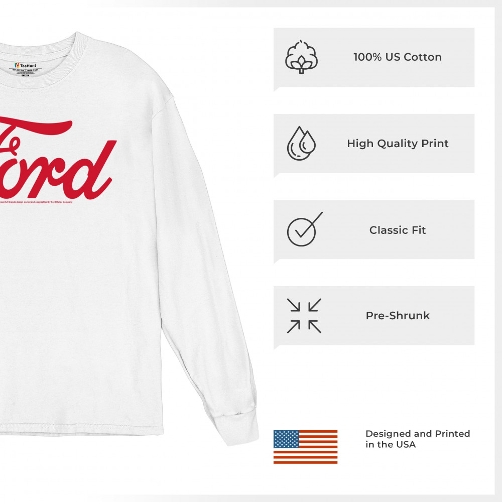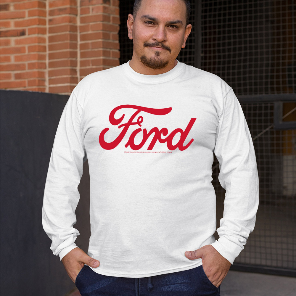 Official Ford script logo in bold red. For fans of muscle cars, classic branding, and iconic American automotive heritage.