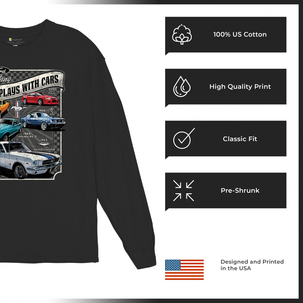 FORD STILL PLAYS WITH MUSTANGS long sleeve t-shirt classic american muscle car black
