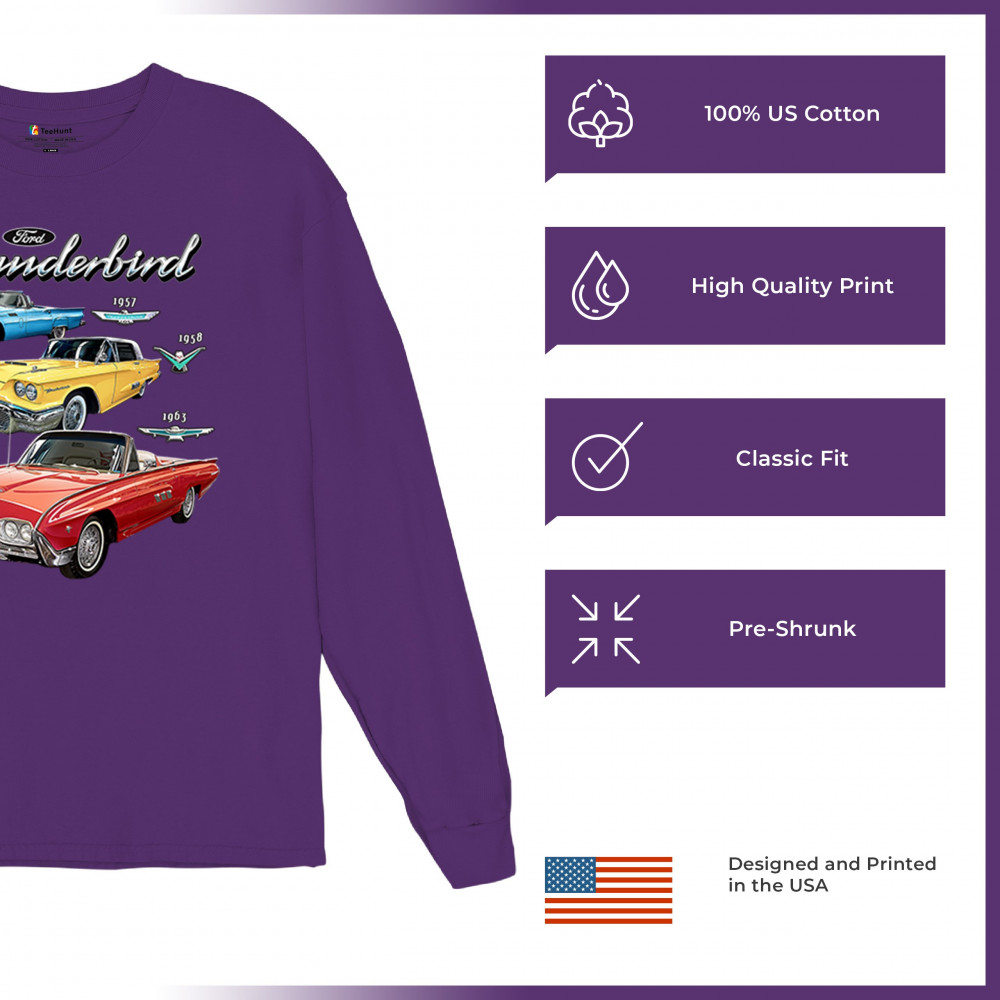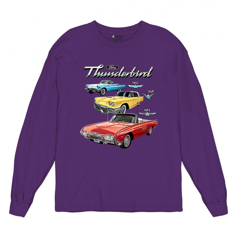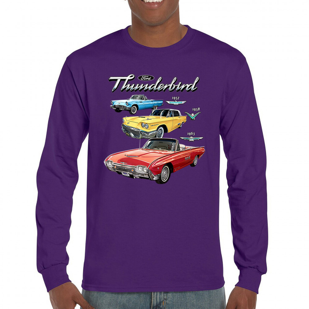 Iconic Ford Thunderbird design with 1957, 1958, and 1963 models. A vintage tribute for car collectors and American muscle fans.