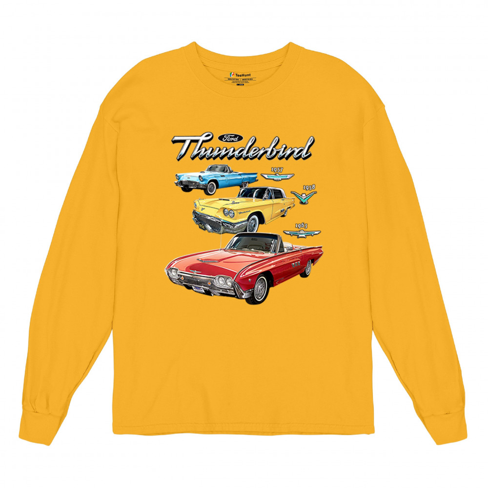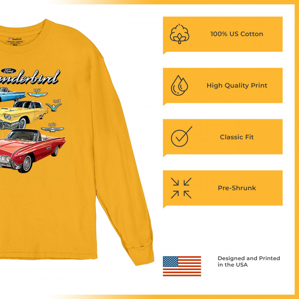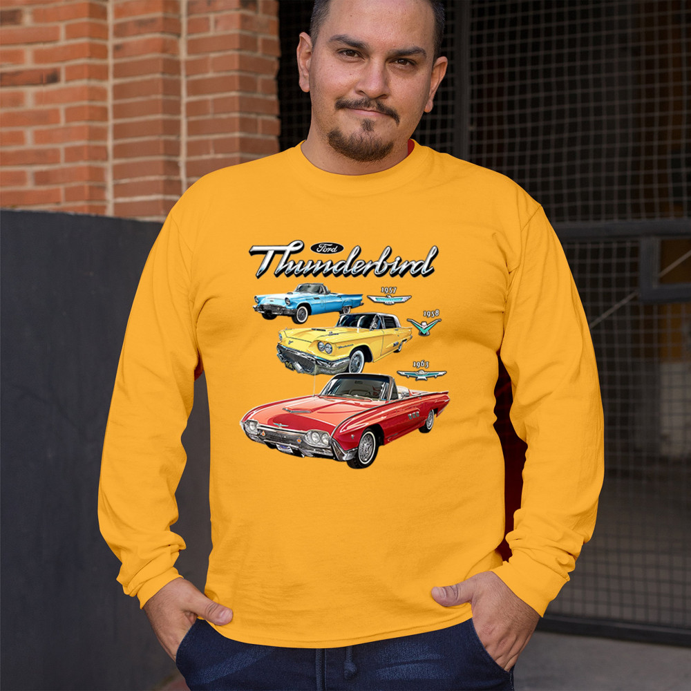 Iconic Ford Thunderbird design with 1957, 1958, and 1963 models. A vintage tribute for car collectors and American muscle fans.