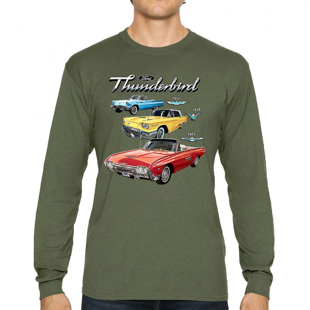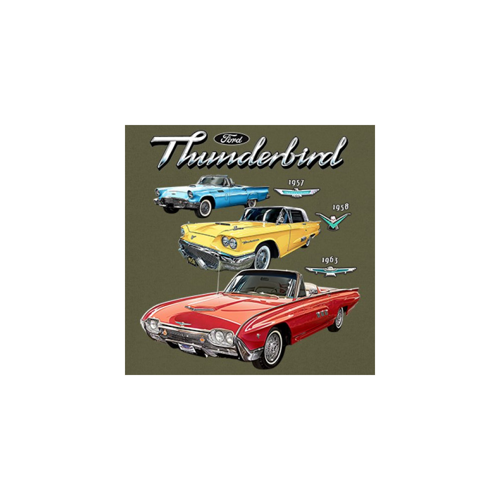Iconic Ford Thunderbird design with 1957, 1958, and 1963 models. A vintage tribute for car collectors and American muscle fans.