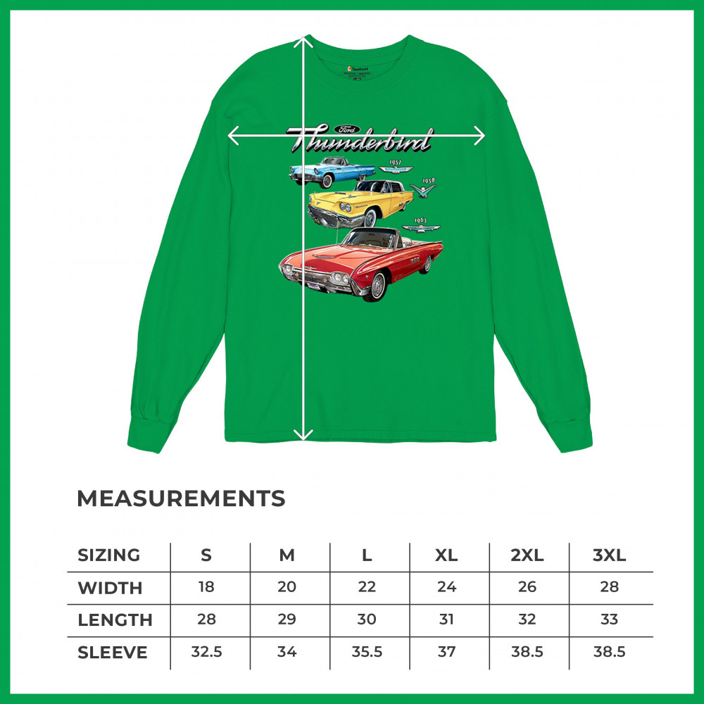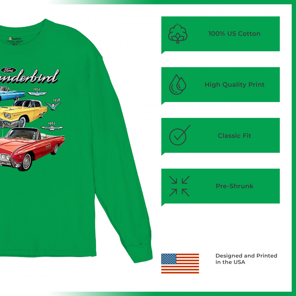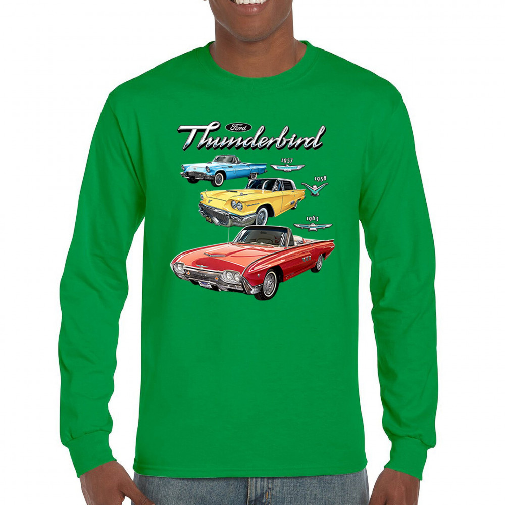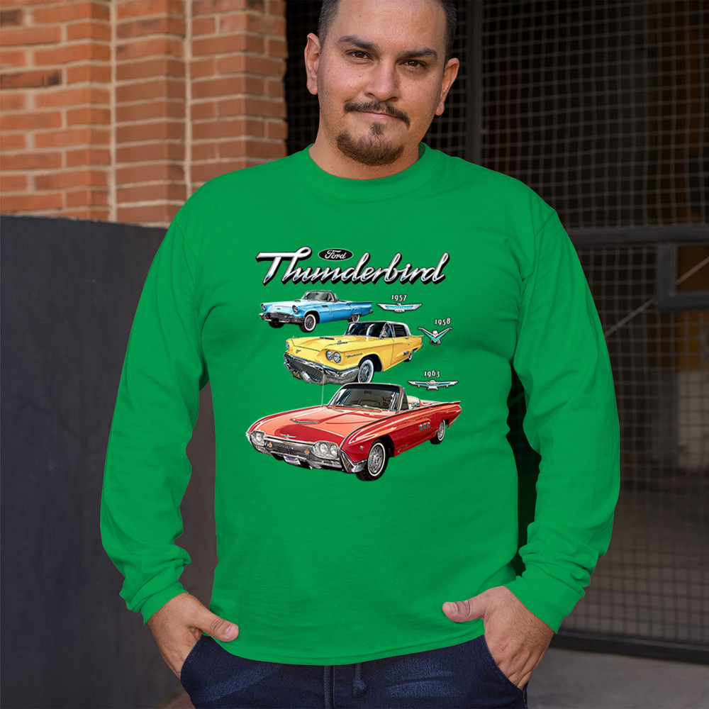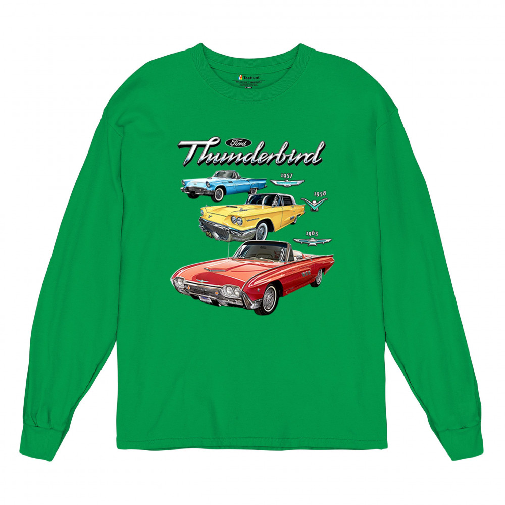 Iconic Ford Thunderbird design with 1957, 1958, and 1963 models. A vintage tribute for car collectors and American muscle fans.